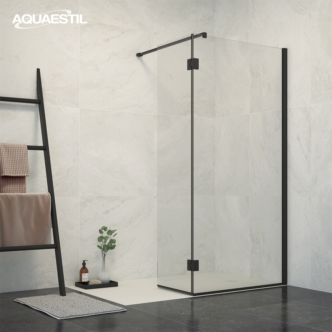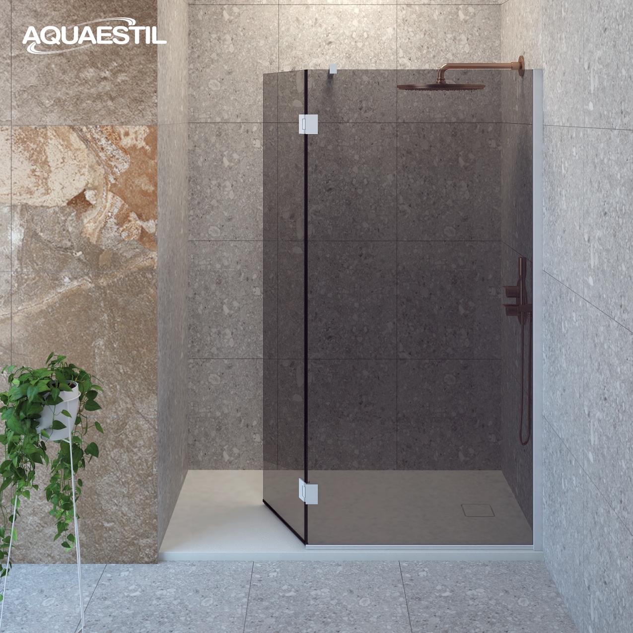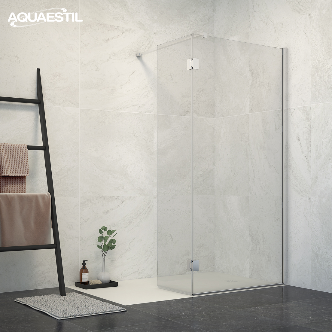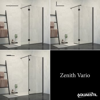 Eine Duschwand, der aus einer festen Glaswand und einem um 180° drehbaren Drehteil mit drei Stopppunkten. Zenith Vario bietet im Vergleich zu einer klassischen festen Glaswand einen besseren Spritzschutz außerhalb des Duschbereichs und ist eine ideale Ergänzung für auch kleinere „walk-in“ Duschbereiche.