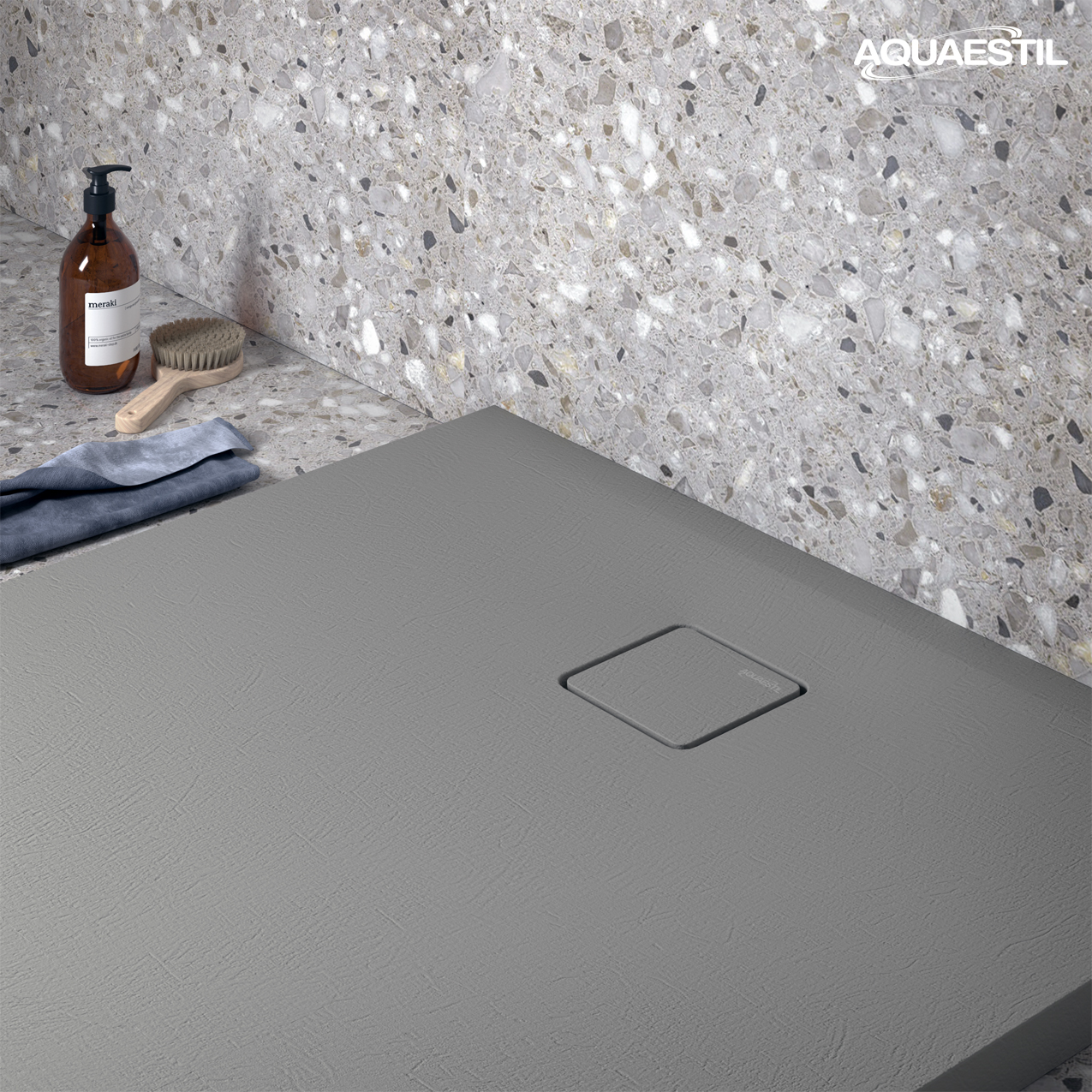 Stone DeLuxe Duschwannen aus Gussmarmor bieten eine solide und elegante Oberfläche, die Beton in Weiß, Beige, Schwarz oder Zementgrau imitiert. Eine attraktive Siphonabdeckung im gleichen Effekt wie die Oberfläche der Duschwanne trägt zum charakteristischen Erscheinungsbild der Stone DeLuxe Duschwannen bei.