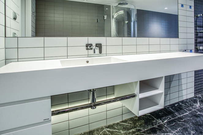 ASTONE materijal idealan je za uporabu u kupaonicama i sanitarnim prostorima gdje nalazi svoju primjenu pri izradi umivaonika, umivaoničkih pulteva i tuševa. Visoka razina primjenjivosti ovog materijala, njegova otpornost na habanje i praktički neograničena fleksibilnost pri obradi, čine ovaj materijal idealnim za opremanje objekata kao što su marine, hoteli i putnički brodovi, ali i primjenu u privatnim prostorima.