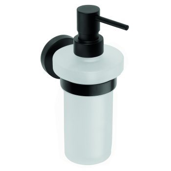 Ovaj elegantni kupaonski dodatak sastoji se od mesinganog držača u kromiranom, bijelom mat ili crnom mat efektu i dozatora tekućeg sapuna od satiniranog stakla. Volumen dozatora je 230 mm.