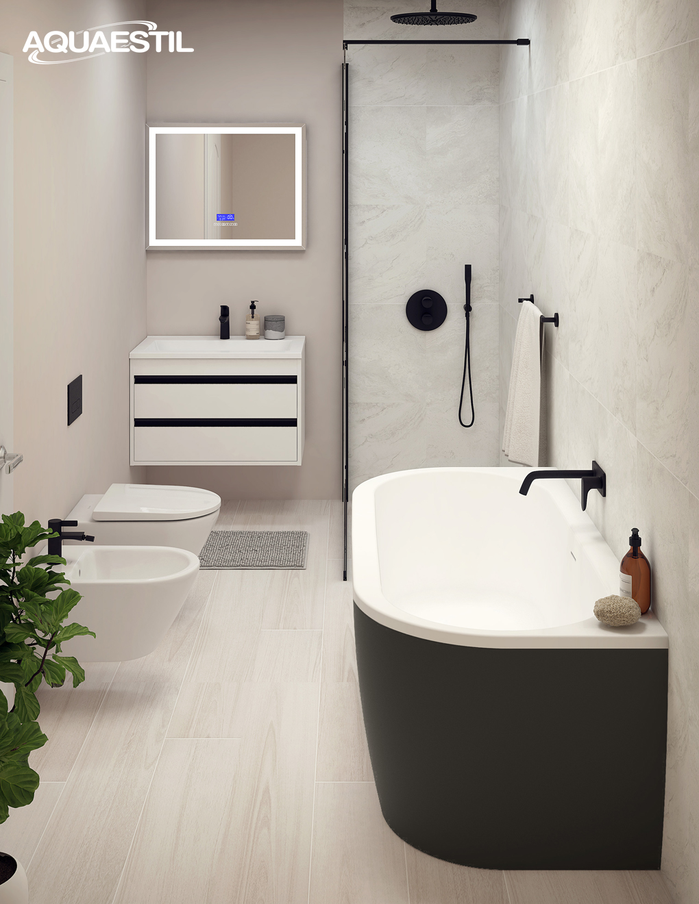 Iznimka su Aquaestil kupaonske kade premium linije Titan koje su izrađene od Astone solid surface kompozitnog materijala ili lijevanog mramora. Kupaonske kade od Astone kompozita nude površinu nježne svilenkaste teksture u mat efektu dok kupaonske kade izrađene od lijevanog mramora dolaze sa savršeno glatkom površinom u sjajnom efektu.