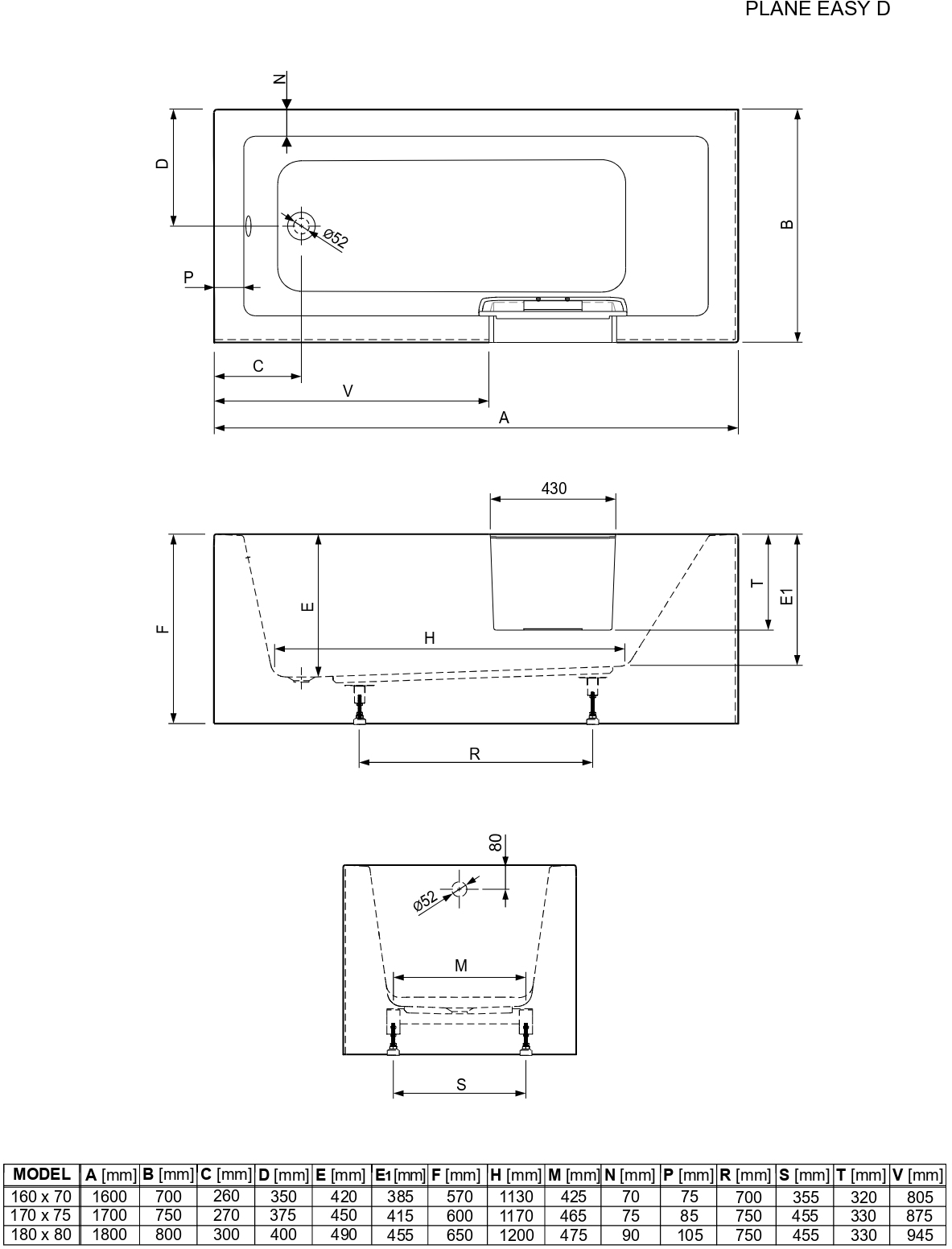Kupaonske kade Plane Easy izrađene su od kvalitetnog lijevanog sanitarnog akrila koji je ugodan na dodir, otporan, prirodno protuklizan te jednostavan za održavanje. Dolaze s tvornički ugrađenim postoljem i preljevno-otočnom garniturom sa „klik-klak“ ventilom sifona. Vrata od 10 mm pleksiglasa atraktivan su detalj dizajna te zahvaljujući magnetnom mehanizmu otvaranja omogućuju olakšan ulazak i izlazak iz kade. Svi elementi tvornički su sastavljeni te se kada isporučuje spremna za ugradnju u Vašu kupaonicu.