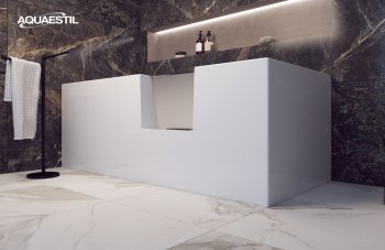 Iznimka su Aquaestil kupaonske kade premium linije Titan koje su izrađene od Astone solid surface kompozitnog materijala ili lijevanog mramora. Kupaonske kade od Astone kompozita nude površinu nježne svilenkaste teksture u mat efektu dok kupaonske kade izrađene od lijevanog mramora dolaze sa savršeno glatkom površinom u sjajnom efektu.