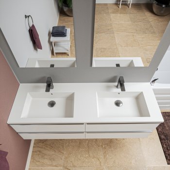 Svi umivaonici i gornje ploče dostupni su u izvedbi s otvorom za miješalicu, ili bez njega. Kupaonske baze standardno se isporučuju s otvorom predviđenim za ugradnju miješalice, a ako planirate podžbuknu armaturu ili drugačiji koncept dovoda vode, prilikom narudžbe moguće je zatražiti izvedbu umivaonika ili gornje ploče bez otvora.