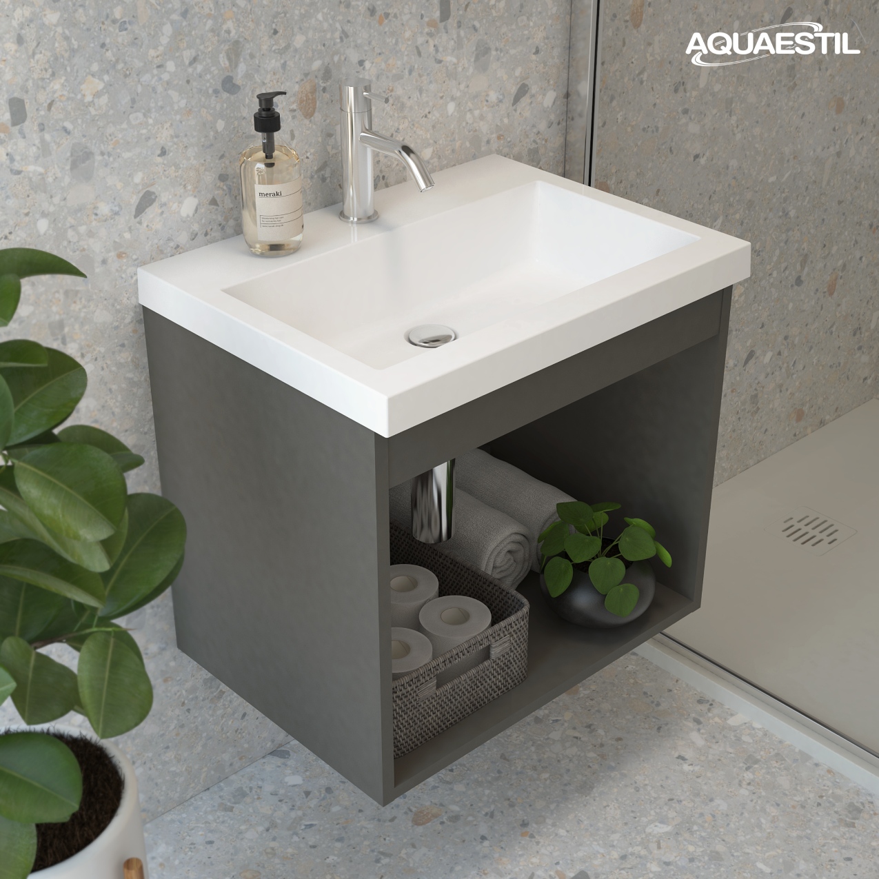 Umivaonici kupaonskog namještaja Aquaestil izrađeni su od lijevanog mramora ili, kod određenih linija, od keramike. Za čišćenje i održavanje Aquaestil umivaonika možete upotrijebiti Aquaestil sredstvo za čišćenje akrilnih i staklenih površina ili standardni tekući kupaonski deterdžent. Za skidanje kamenca preporučamo alkoholni ocat ili sredstva namijenjena čišćenju kamenca bez mikrogranula koje bi mogle strugati površinu umivaonika.