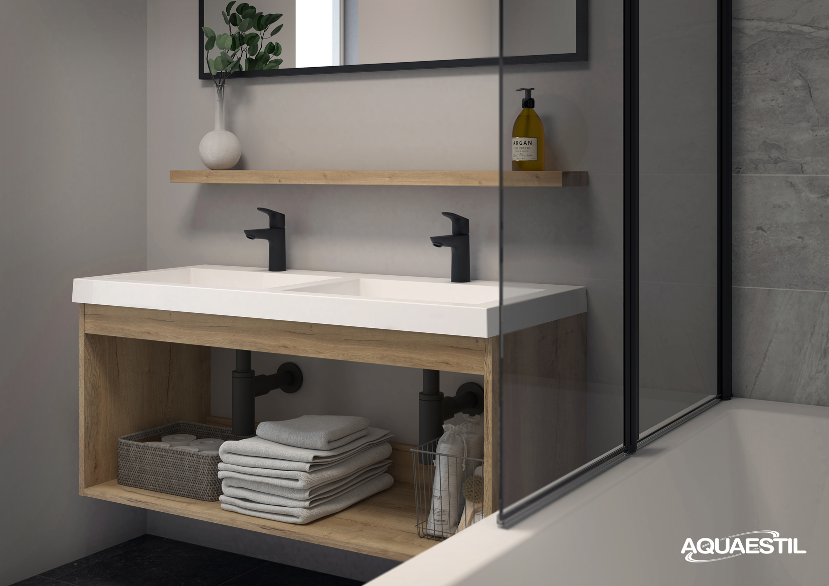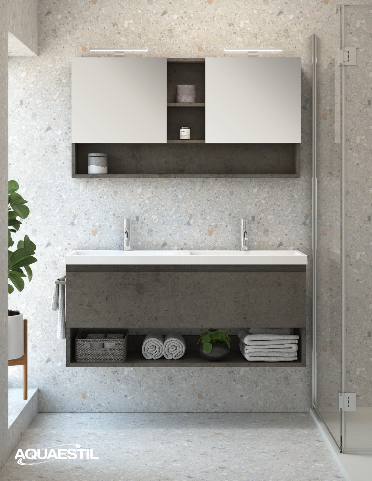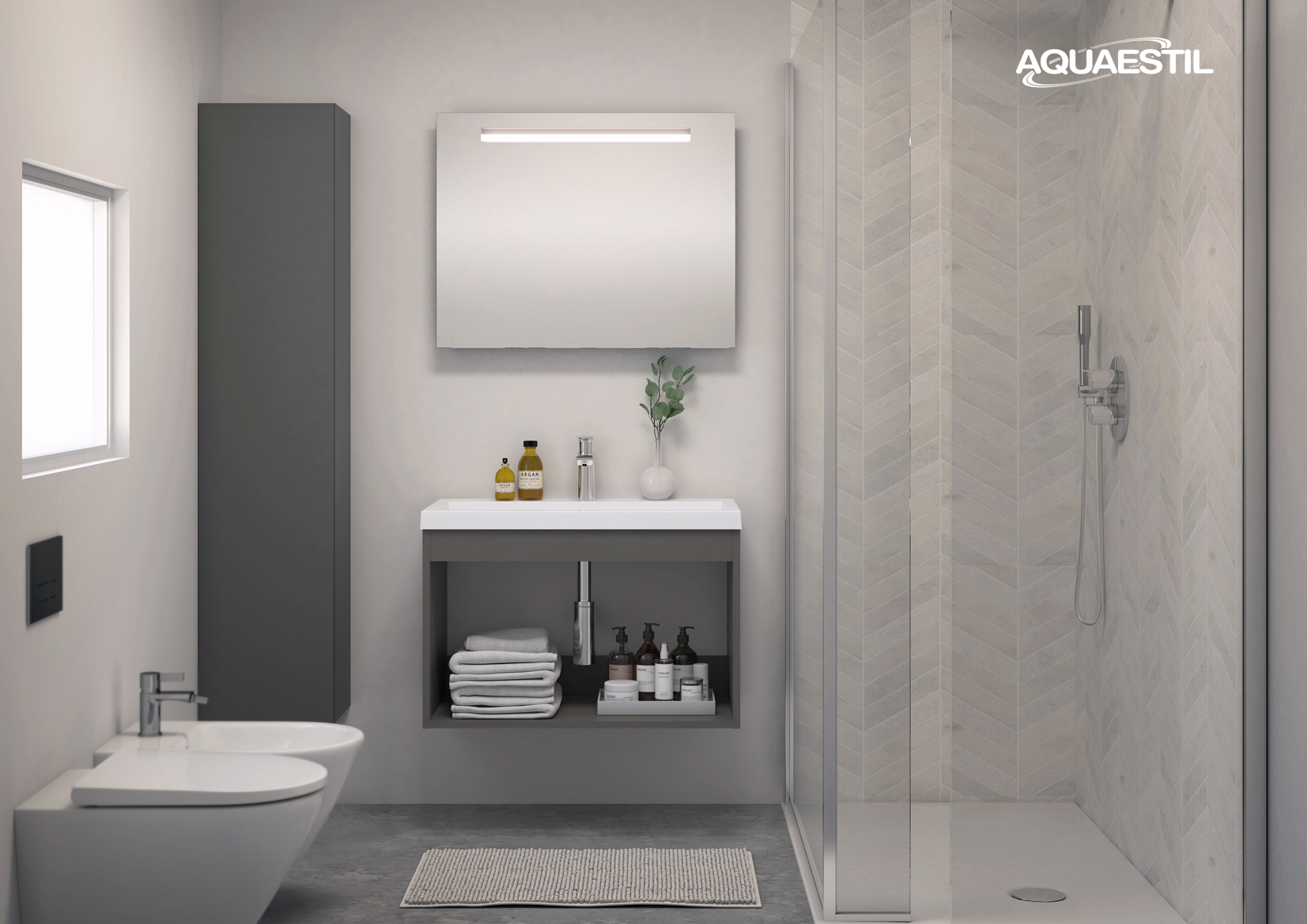 - Boje prezentirane na web stranici mogu u manjoj mjeri odstupati u odnosu na stvarne boje kupaonskog namještaja. Uzorci boja namještaja mogu se vidjeti uživo kod ovlaštenih Aquaestil maloprodajnih partnera ili u našem izložbenom salonu.