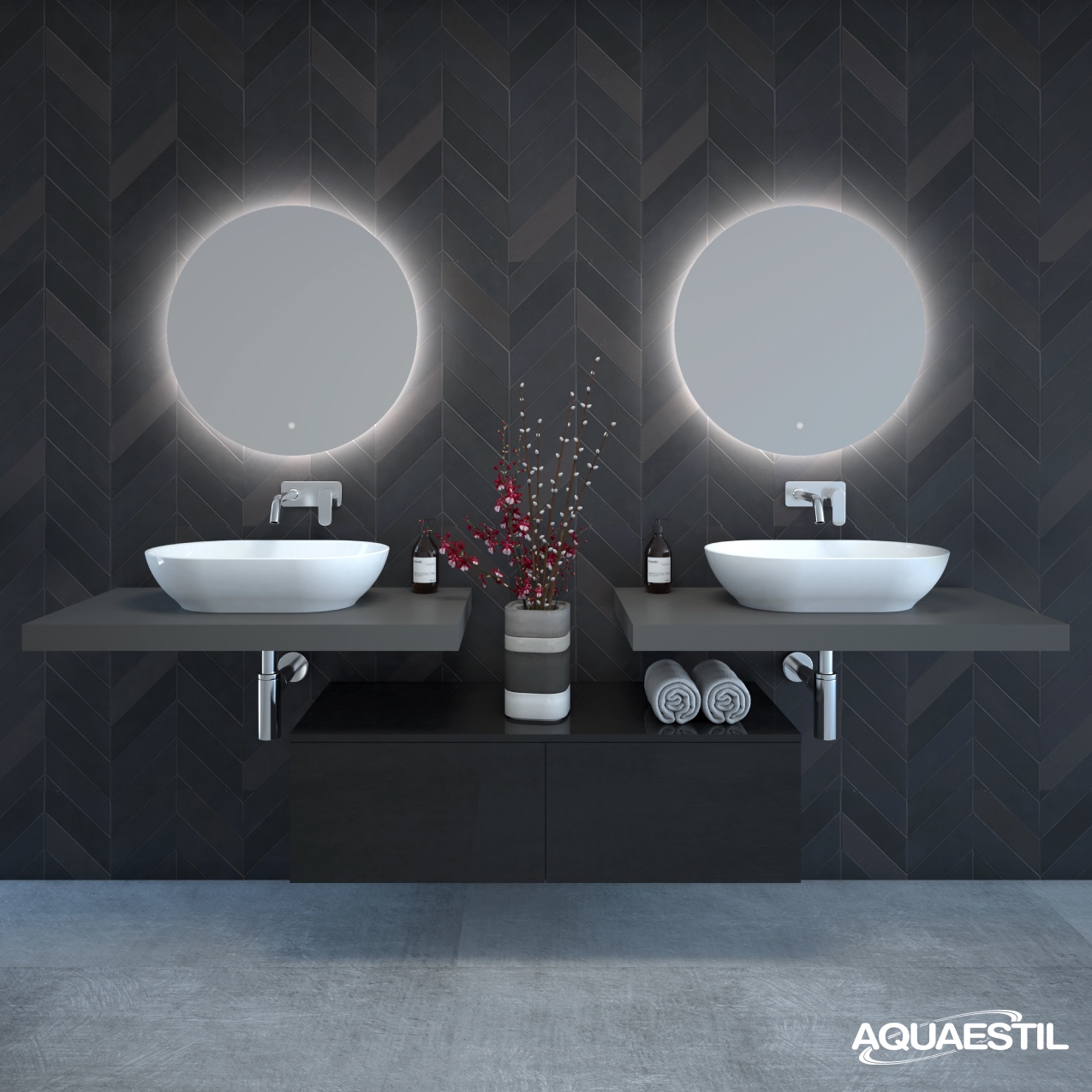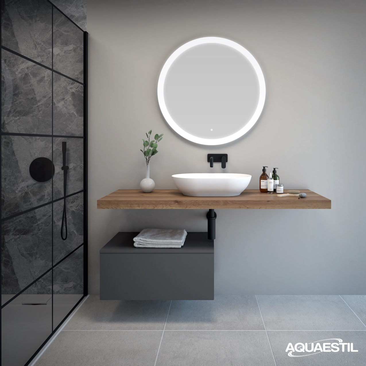 - Boje prezentirane na web stranici mogu u manjoj mjeri odstupati u odnosu na stvarne boje kupaonskog namještaja. Uzorci boja namještaja mogu se vidjeti uživo kod ovlaštenih Aquaestil maloprodajnih partnera ili u našem izložbenom salonu.