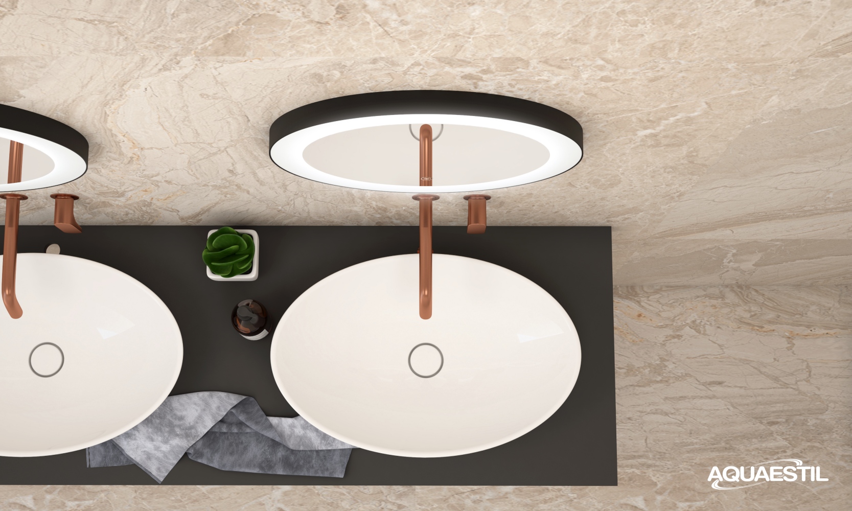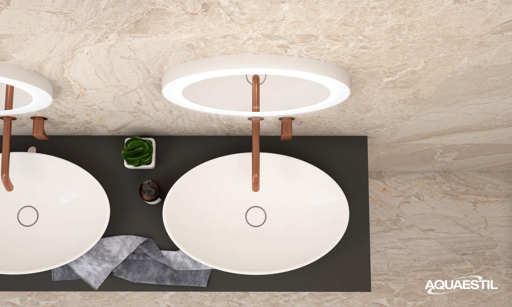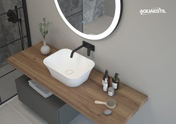 Umivaonici kupaonskog namještaja Aquaestil izrađeni su od lijevanog mramora ili, kod određenih linija, od keramike. Za čišćenje i održavanje Aquaestil umivaonika možete upotrijebiti Aquaestil sredstvo za čišćenje akrilnih i staklenih površina ili standardni tekući kupaonski deterdžent. Za skidanje kamenca preporučamo alkoholni ocat ili sredstva namijenjena čišćenju kamenca bez mikrogranula koje bi mogle strugati površinu umivaonika.
