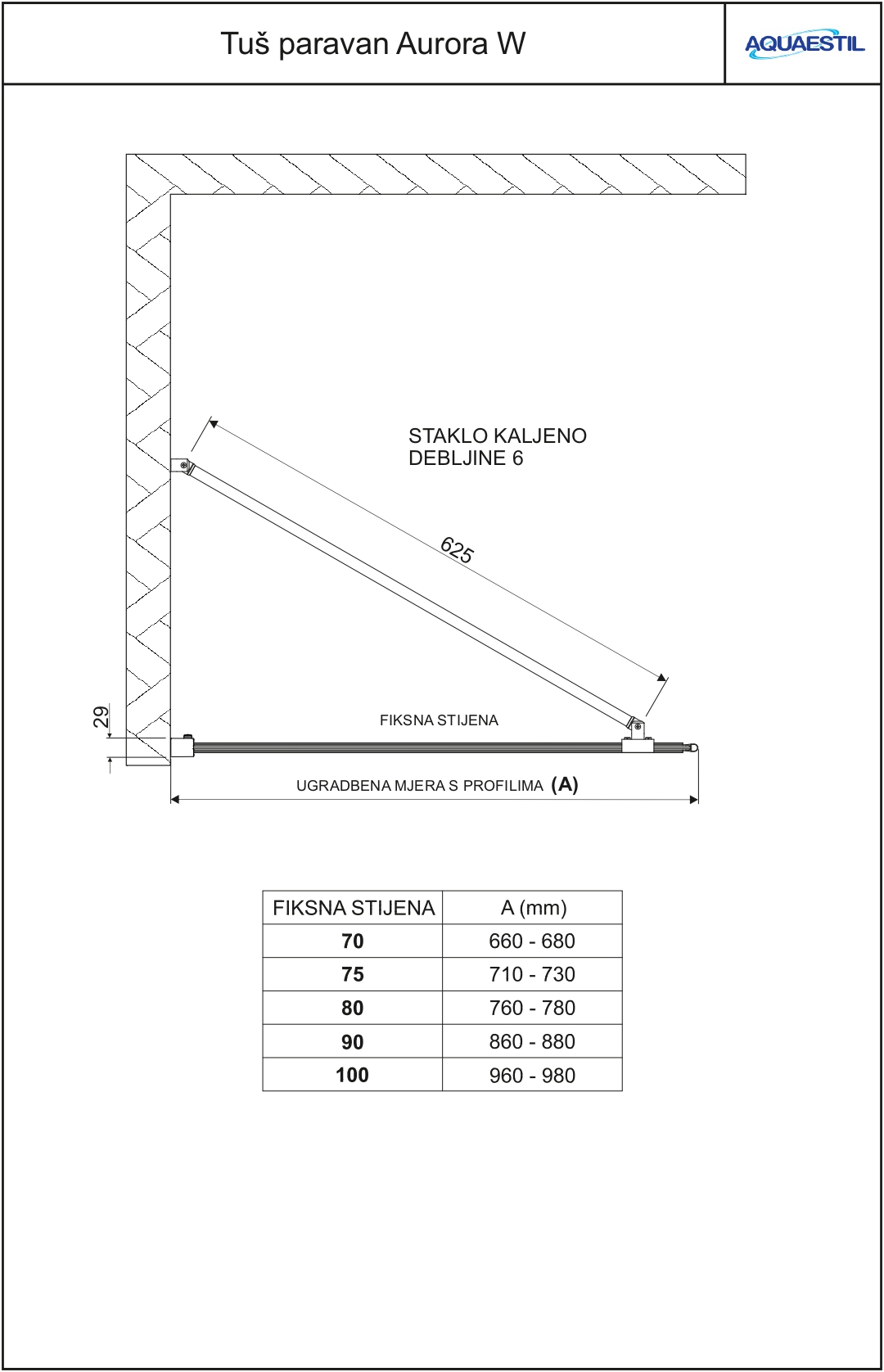 Aurora Wall je fiksna stijena kojom se elegantno odvaja prostor za tuširanje od ostalog kupaonskog prostora. Prvenstveno je namijenjena ugradnji na vrlo plitke tuš kade ili prostore za tuširanje izvedene od keramičkih pločica.