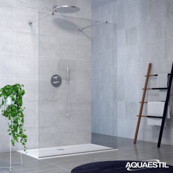 Zenith je moderna fiksna staklena stijena koja se postavlja paralelno sa zidom na koji je naslonjena tuš kada ili prostor za tuširanje izveden od keramičkih pločica, a u kombinaciji s jednom od plitkih Aquaestil tuš kada ili prostorom izvedenim od pločica, sačinjava moderni “walk-in” kupaonski koncept. Brtvljenje na spoju tuš kade / pločica i fiksne stijene osigurava se aluminijskim U profilom.