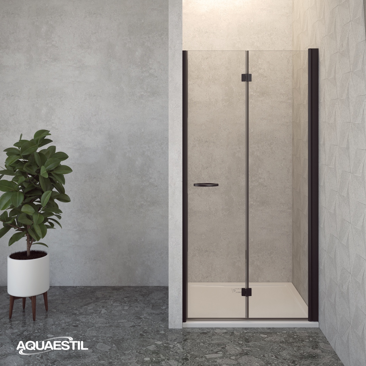 Ovaj stakleni paravan za tuš kade koje se nalaze između tri zida opremljen je jednim vratima koja se mogu preklopiti u oba smjera. Zbog načina na koji se otvaraju vrata, štedi prostor kupaonice. Vrata ovog paravana imaju lift sistem koji omogućuje lako otvaranja bez struganja po tuš kadi.
