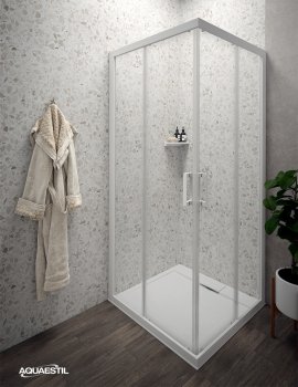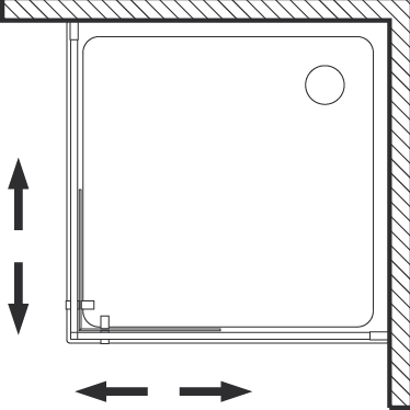 Ovaj moderni stakleni paravan sastoji se od dvije stranice s kliznim vratima istih dimenzija, a prvenstveno je namijenjen plitkim kvadratnim tuš kadama i prostorima za tuširanje izvedenim od keramičkih pločica. Elegantni profili koji se nalaze s gornje i donje strane osiguravaju maksimalnu čvrstoću cijele konstrukcije. Vrata su s gornje strane opremljena dvostrukim kotačićima koji osiguravaju lakše klizanje, a vertikalne brtve na spoju vrata su magnetne.