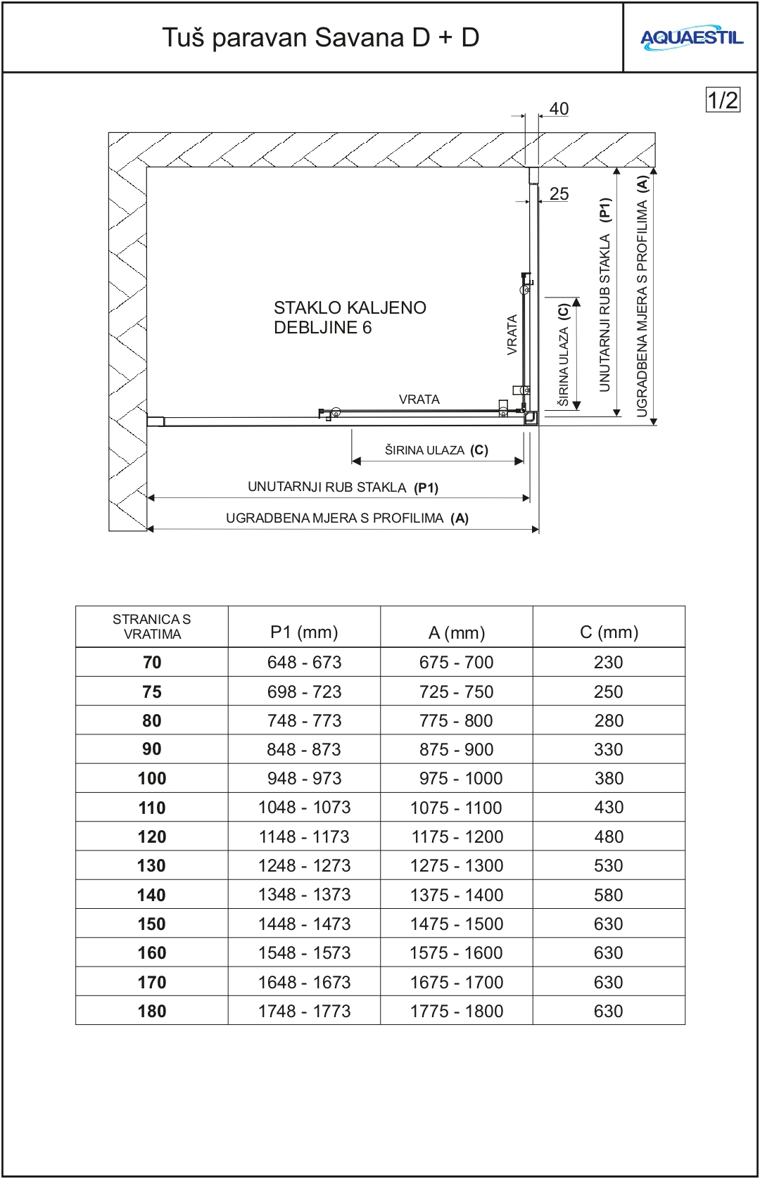 - Ukoliko se paravan postavlja na pločice, a ne na tuš kadu, uz narudžbu je potrebno dostaviti nacrt sa točnim dimenzijama prostora za tuširanje.