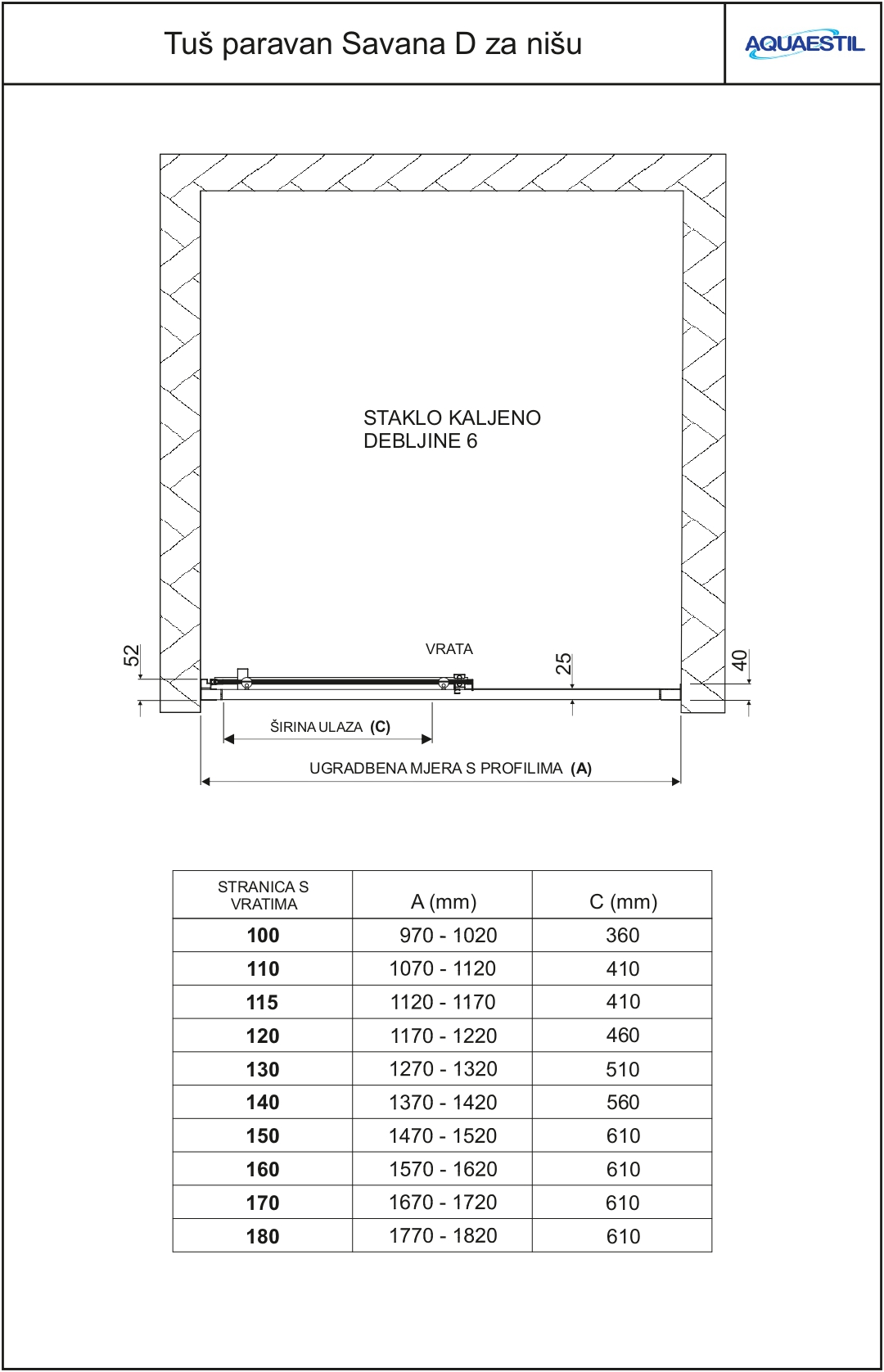 Savana D za nišu je paravan s kliznim vratima namijenjen prostorima za tuširanje koji se nalaze između tri zida. Elegantni profili koji se nalaze s gornje i donje strane osiguravaju maksimalnu čvrstoću cijele konstrukcije. Vrata su s gornje strane opremljena dvostrukim kotačićima koji osiguravaju lakše klizanje, a vertikalne brtve na spoju vrata su magnetne.