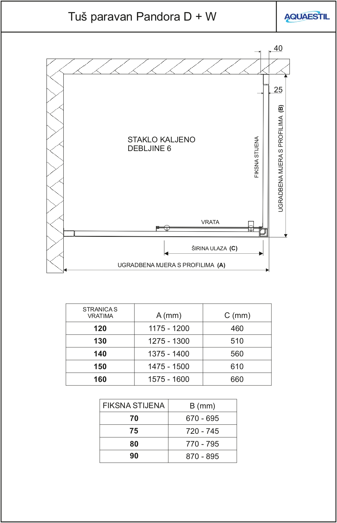 Ovaj moderni paravan namijenjen je za ugradnju na pravokutne kade smještene između dva zida. Sastoji se od jedne fiksne stijene za kraću stranicu kupaonske kade i jedne stranice s kliznim vratima. Klizna vrata se mogu postaviti na lijevu ili desnu stranu dulje stranice. Paravan Pandora D+W zbog svoje visine i načina brtvljenja u potpunosti elminira prskanje vode izvan kade, a ujedno je i elegantan dodatak svakoj kupaonici zbog modernog dizajna i funkcionalnosti.