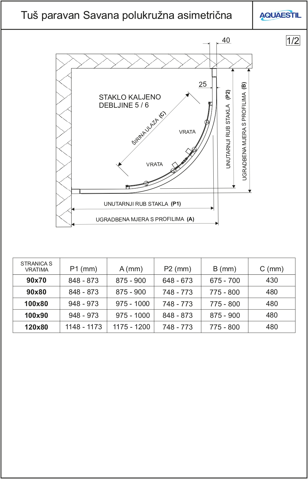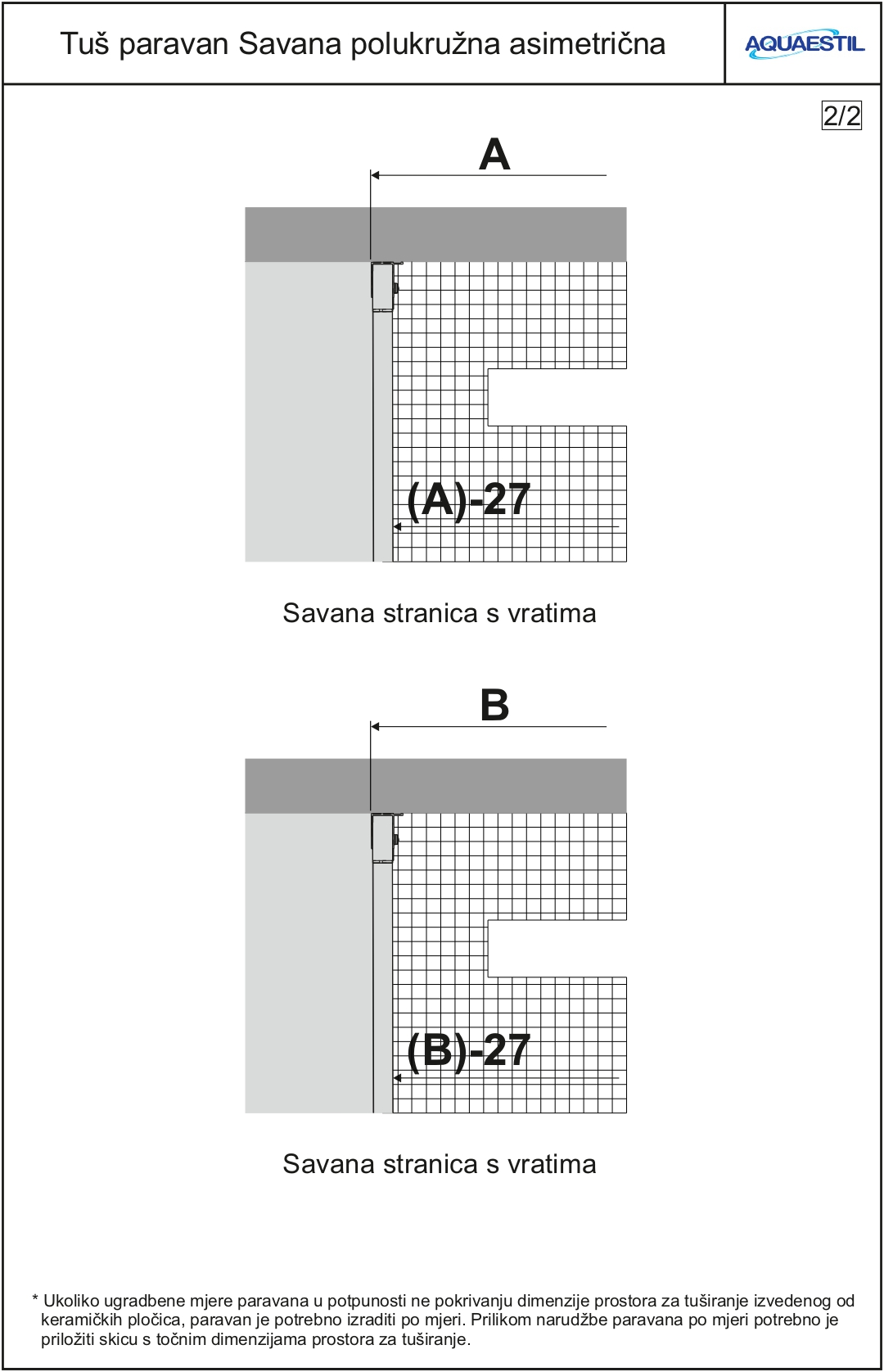 - Izrada po mjeri nije dostupna za tuš paravane u polukružnim varijantama.