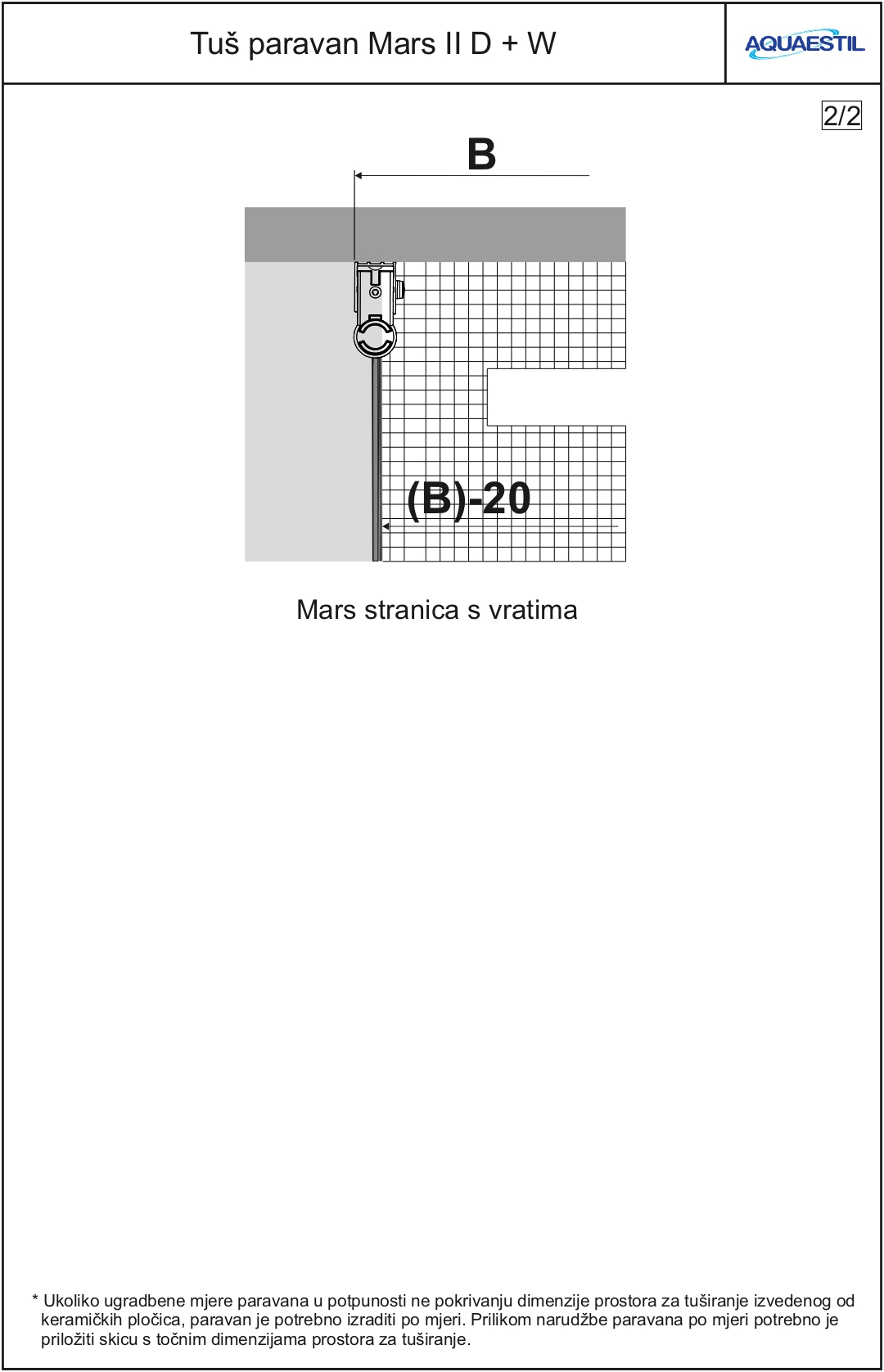 - Ukoliko se paravan montira na pločice, a ne na tuš kadu, prilikom narudžbe to je potrebno naglasiti i dostaviti skicu prostora za tuširanje.