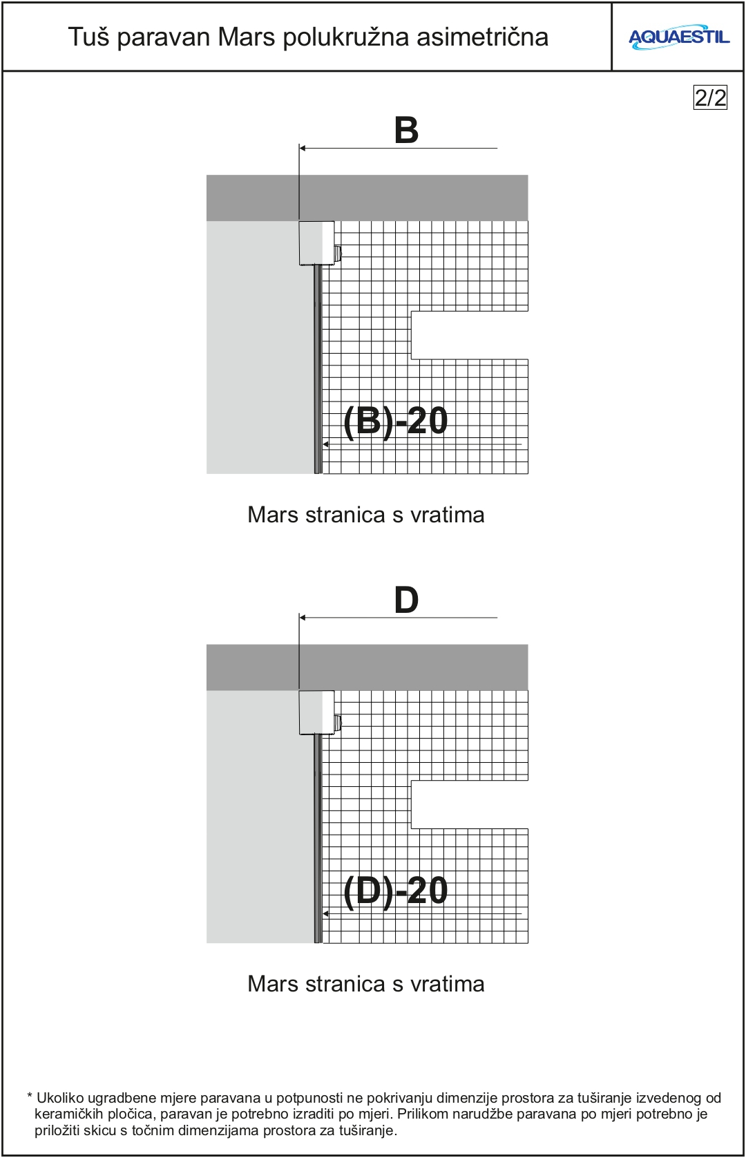 - Izrada po mjeri nije dostupna za tuš paravane u polukružnim varijantama.