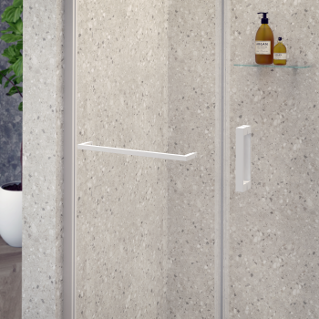 Vješalica se montira na već postavljeni paravan u samo nekoliko sekundi te je kompatibilna sa 6 ili 8 mm staklom.