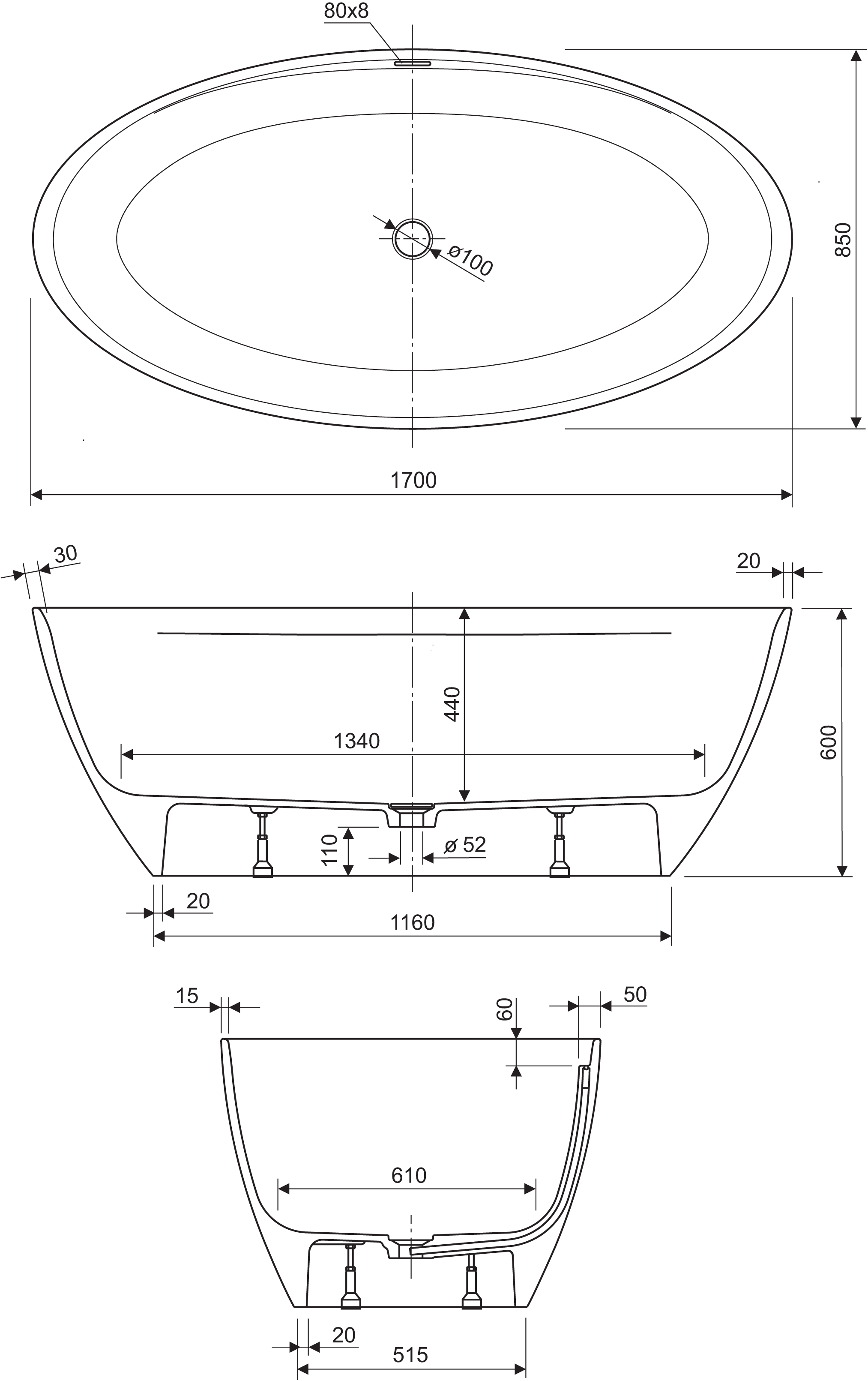 • 170 x 85 cm Vol: 260 ltr