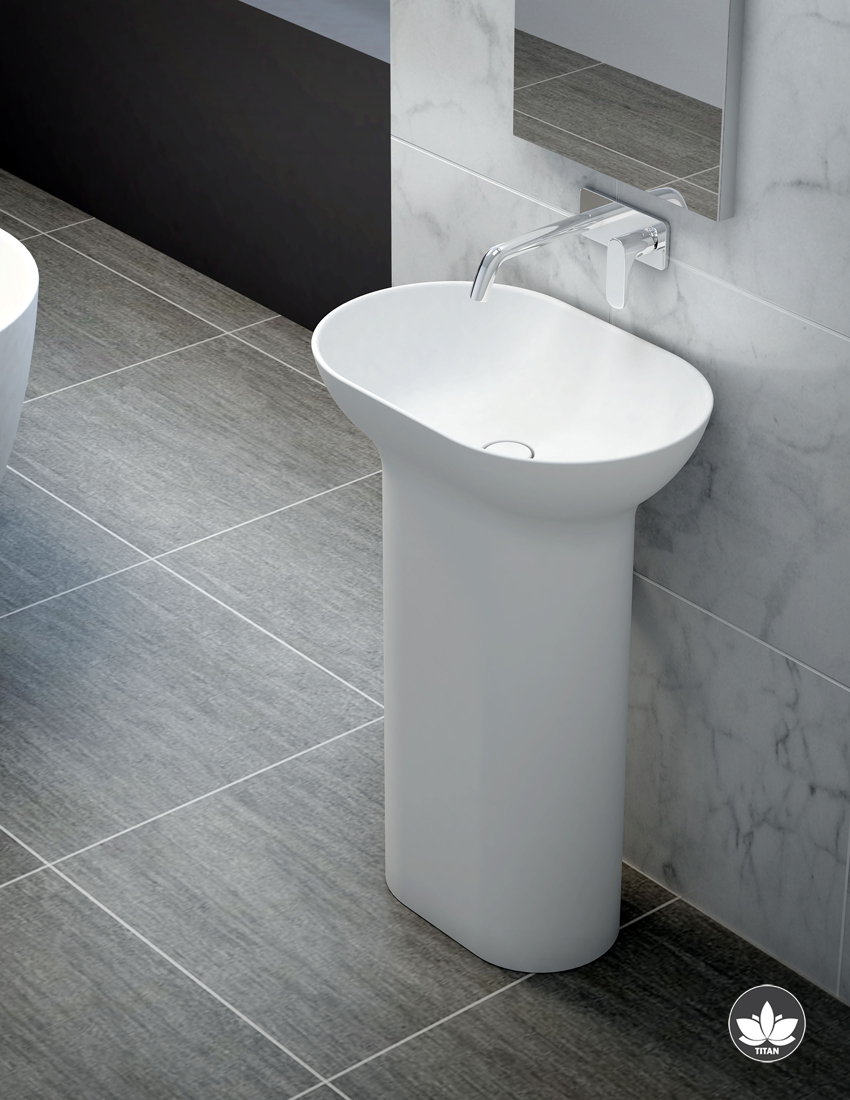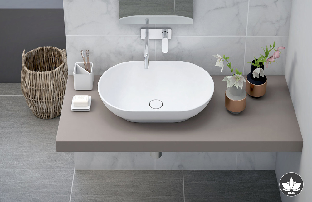 S Titan long round nadgradnim ili samostojećim umivaonicima stvorite jedinstveni Titan Premium doživljaj kupaonskog interijera.