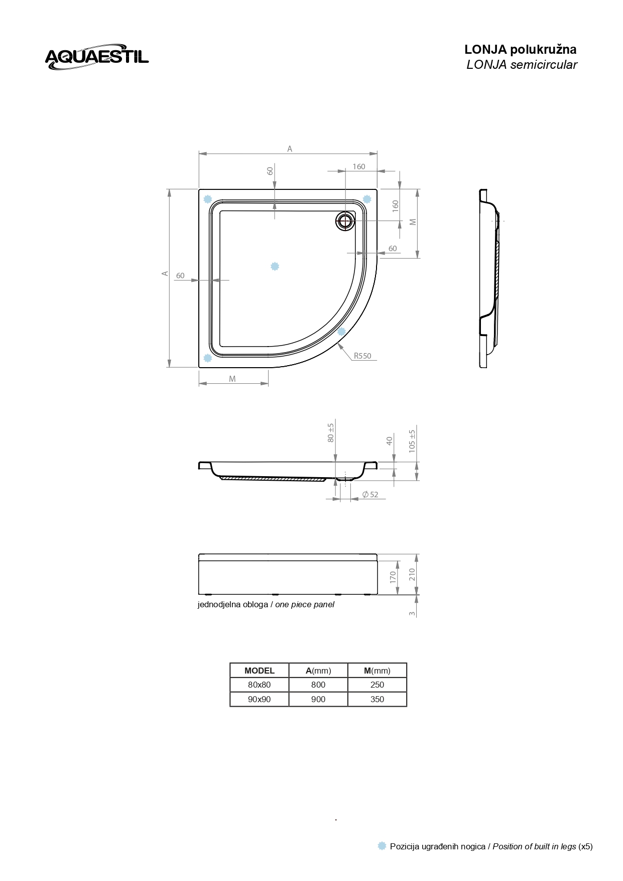 Lonja je klasična tuš kada povećane dubine i standardnog otvora sifona. Omogućuje kombiniranje sa svim standardnim modelima polukružnih tuš paravana.