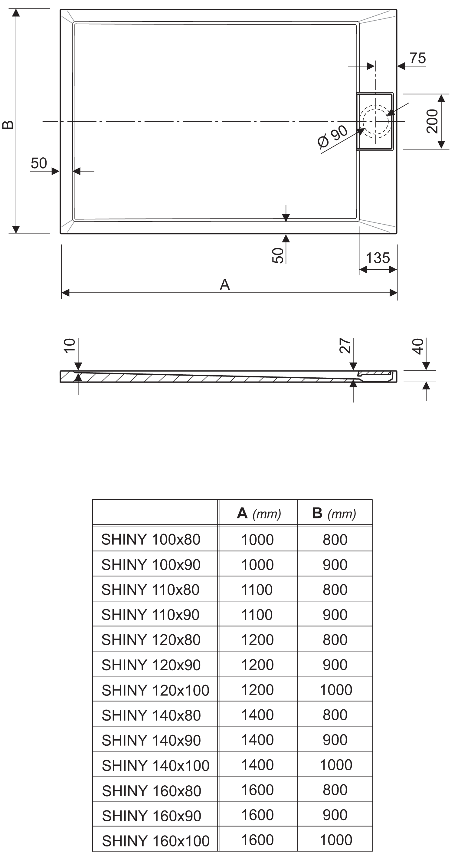 Tuš kada Shiny je karakteristična po posebno izvedenom poklopcu sifona i modernim, oštrim linijama. Tuš kade od lijevanog mramora odlikuju se maksimalnom čvrstoćom i savršenim linijama koje je moguće izvesti zahvaljujući naprednim svojstvima ovog materijala. Površina ovih tuš kada je sjajna i vrlo jednostavna za svakodnevno čišćenje i održavanje.