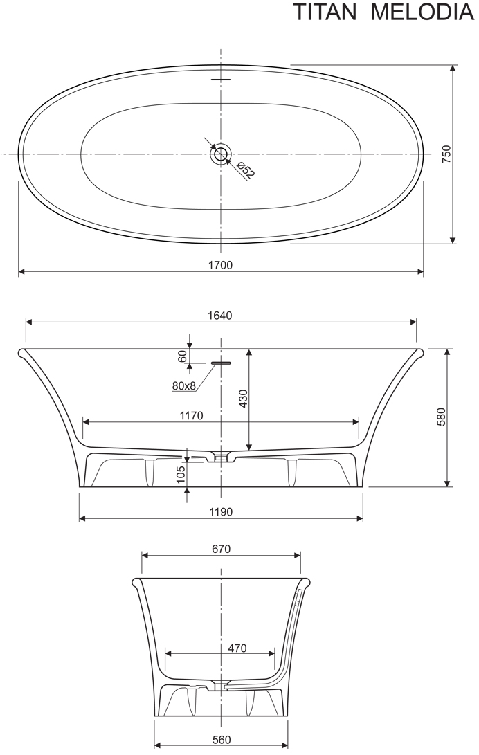 - Kopalna kad je dobavljena z nameščenimi nogami in prelivno-iztočnim kompletom z "režo" prelivom in sifonskim ventilom "click-clack".