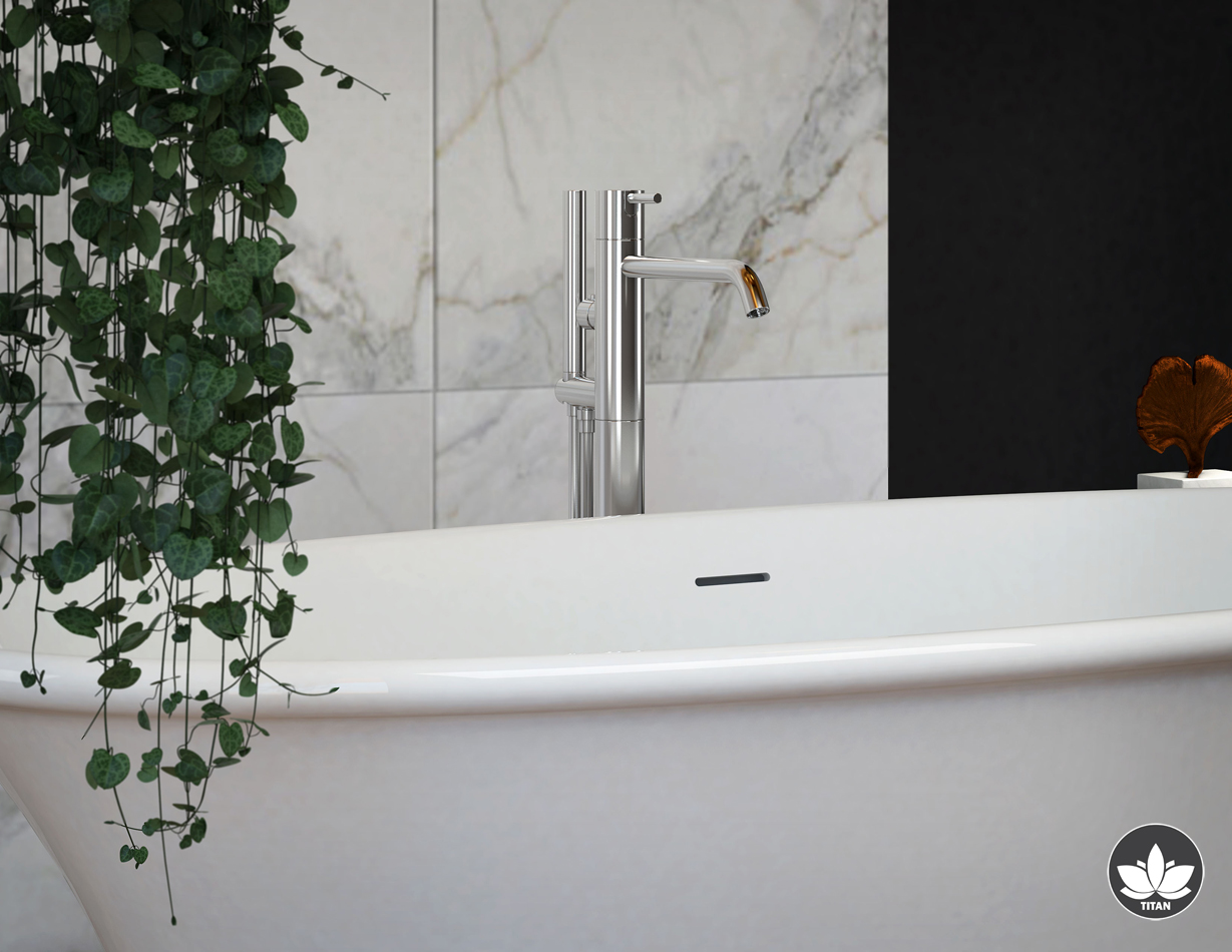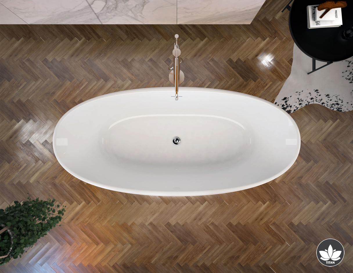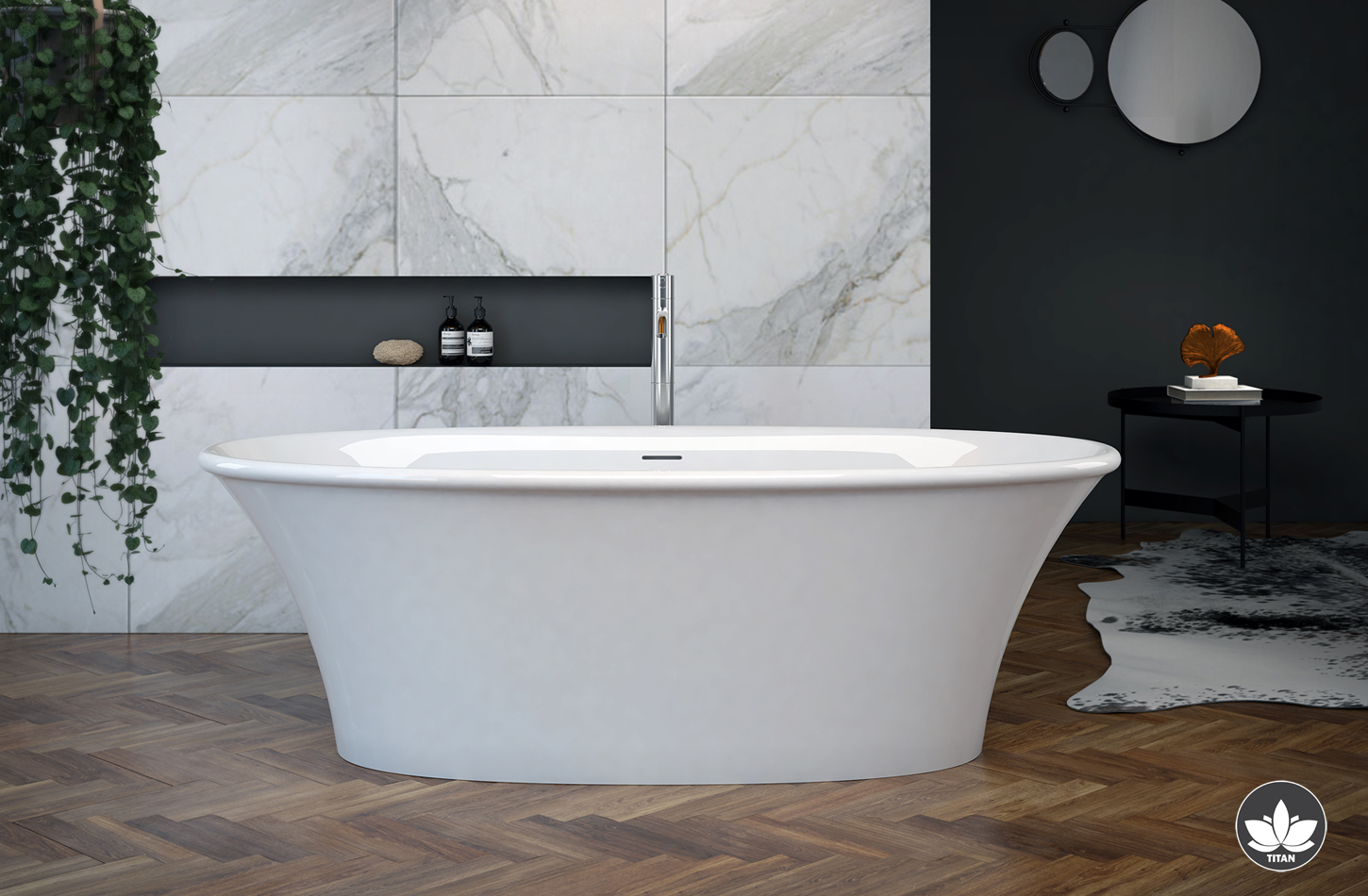 Elegantna samostoječa kad Titan melodia je na voljo izključno v izvedbi iz litega marmorja v beli barvi.